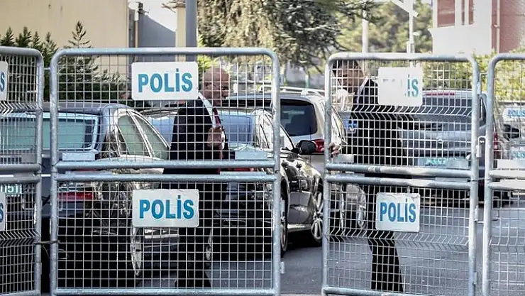Yerli ve yabancı basın mensupları, etrafı polis bariyerleriyle çevrili başkonsolosluk binasının önünde, yağmurlu hava şartlarına rağmen gelişmeleri yakından takip ediyor.
