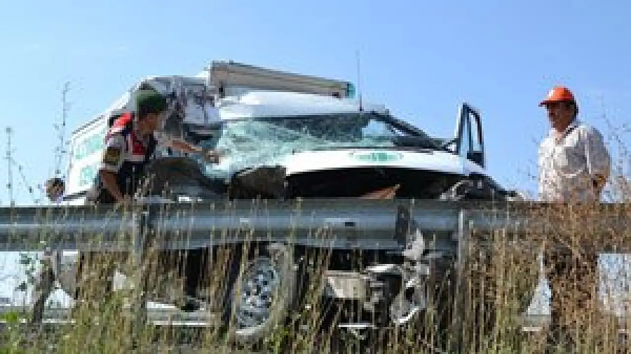 Konya'nın Kulu ilçesinde cenaze aracının önce aynı yöndeki kamyonun kasasına ardından da bariyerlere çarpması sonucu meydana gelen trafik kazasında 1 kişi yaralandı.