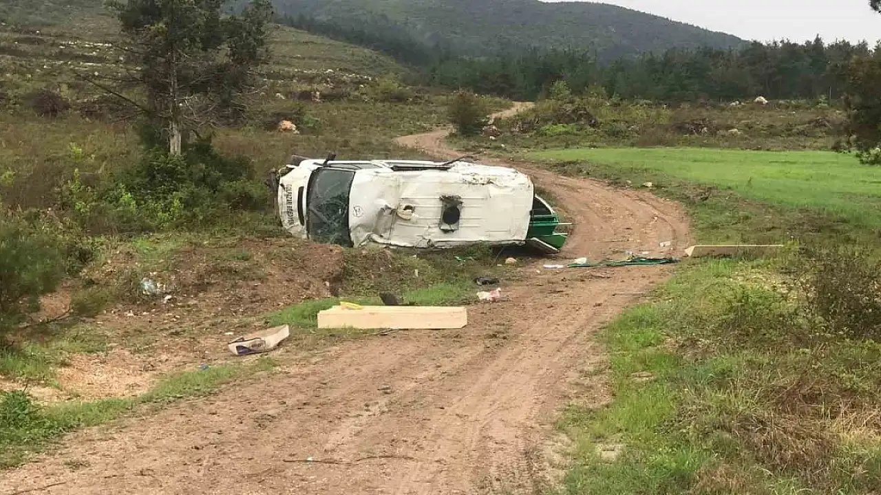 Bilecik'te cenaze almaya giden cenaze aracının devrilmesi sonucu sürücü yaralandı.
