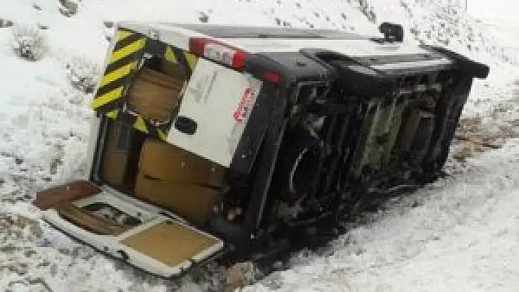 Sivas'ın Gürün ilçesinde cenazeye giden minibüs kayganlaşan yolda şarampole devrildi. Kazada 8 kişi yaralanarak hastaneye kaldırıldı.