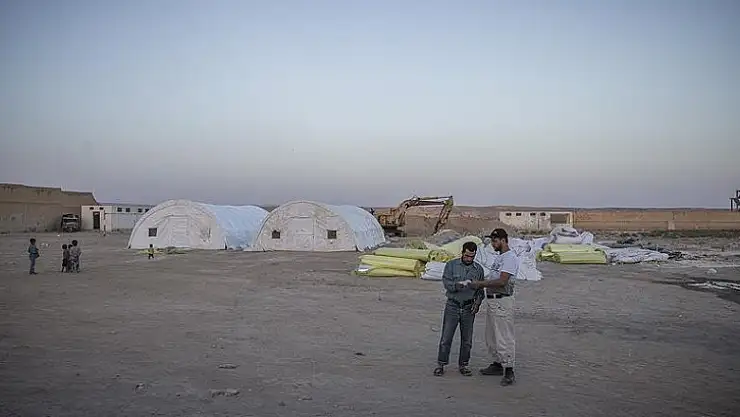 Fırat Kalkanı Harekatı ile terör örgütlerinden arındırılan Cerablus'ta yoğun göç nedeniyle yaşanan barınma sorununun giderilmesi için yaklaşık 2 bin kişilik çadır kent kuruluyor.
