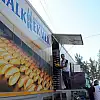 Ankara Büyükşehir Belediyesi tarafından sınıra yakın bölgeye konuşlandırılan mobil fırında 8'i Suriyeli 11 işçi günlük 10 bin ekmek üretiyor.