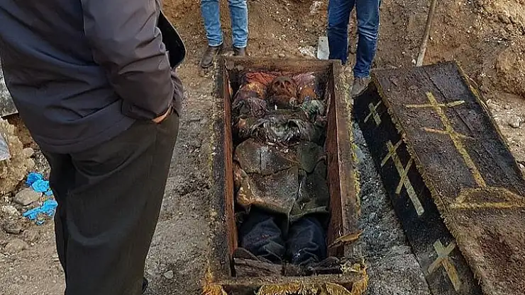 Kentin Karagöl Mahallesi'ndeki bir inşaat alanında 26 Nisan'da yapılan kazıda, toprak altında tek oda şeklinde düzenlenmiş bir mezarda bulunan tabutta yer alan ve üniformasıyla gömülen işgalci Rus subaya ait olduğu değerlendirilen cesedin korunması ve kimlik tespiti amacıyla başlatılan çalışmalar sürüyor.
