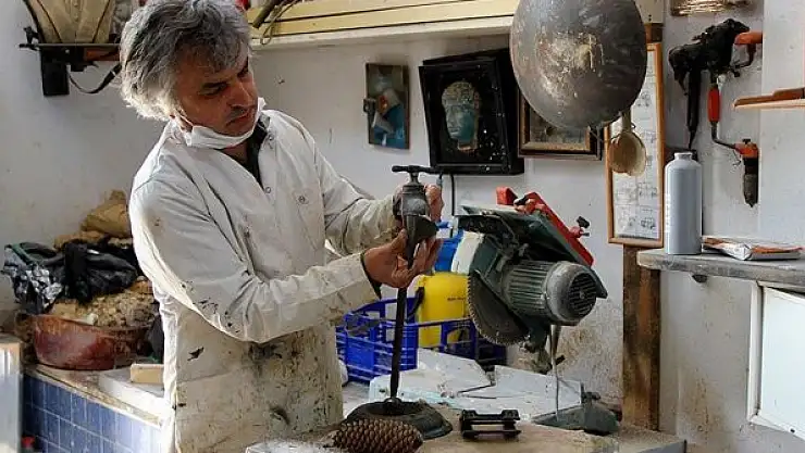 Trakya Üniversitesi (TÜ) İlhan Koman Heykel ve Resim Müzesi Müdürü de olan Özcan, salgın sürecinde zamanının büyük bölümünü Karaağaç Mahallesi'ndeki sanat atölyesinde geçiriyor.