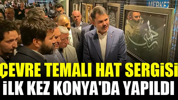 Çevre ve iklim değişikliği temalı dünyanın ilk ve tek hat sergisi, Konya'da yapıldı. MÜSİAD'ın düzenlediği GİK organizasyonunda açılan sergide 5 hattatın ayet ve hadisler ışığında çevre temalı yaptıkları eserler yer alırken, sergiyi Çevre, Şehircilik ve İklim Değişikliği Bakanı Murat Kurum da ziyaret etti.