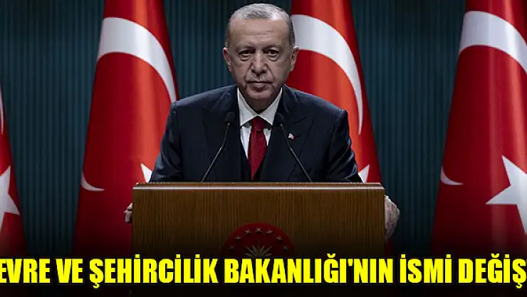 Cumhurbaşkanı Erdoğan, Çevre ve Şehircilik Bakanlığı'nın isminin Çevre ve Şehircilik ve İklim Değişikliği Bakanlığı olarak değiştirildiğini açıkladı.