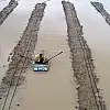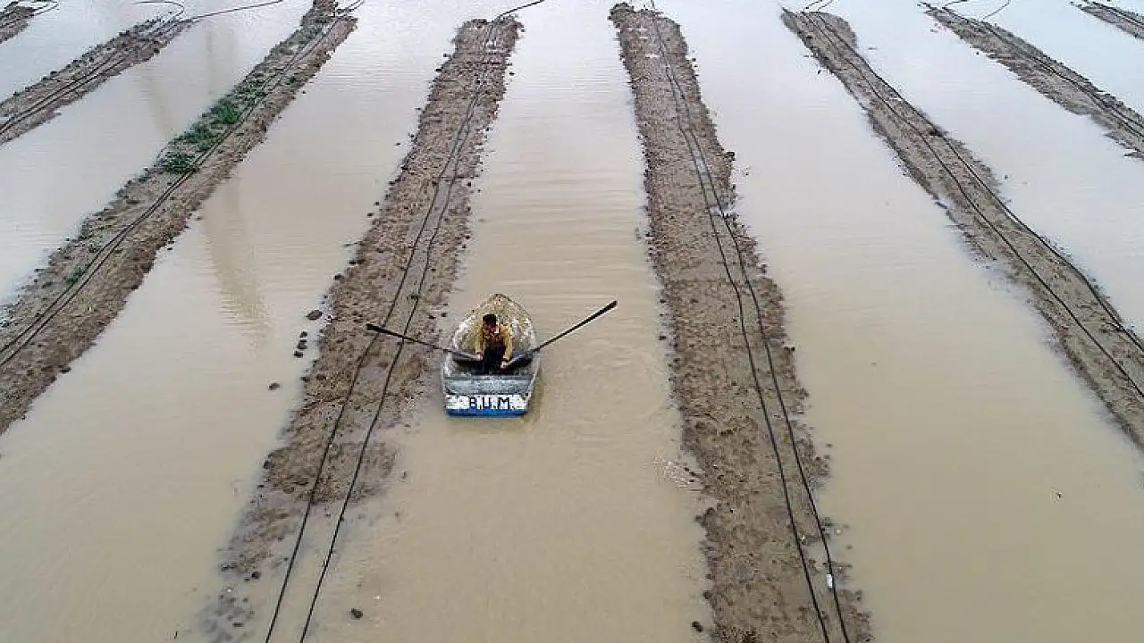 Bu arada, bir çiftçi de tarlasına kayıkla girerek arazideki sulama motorunu su içinden çıkardı.