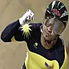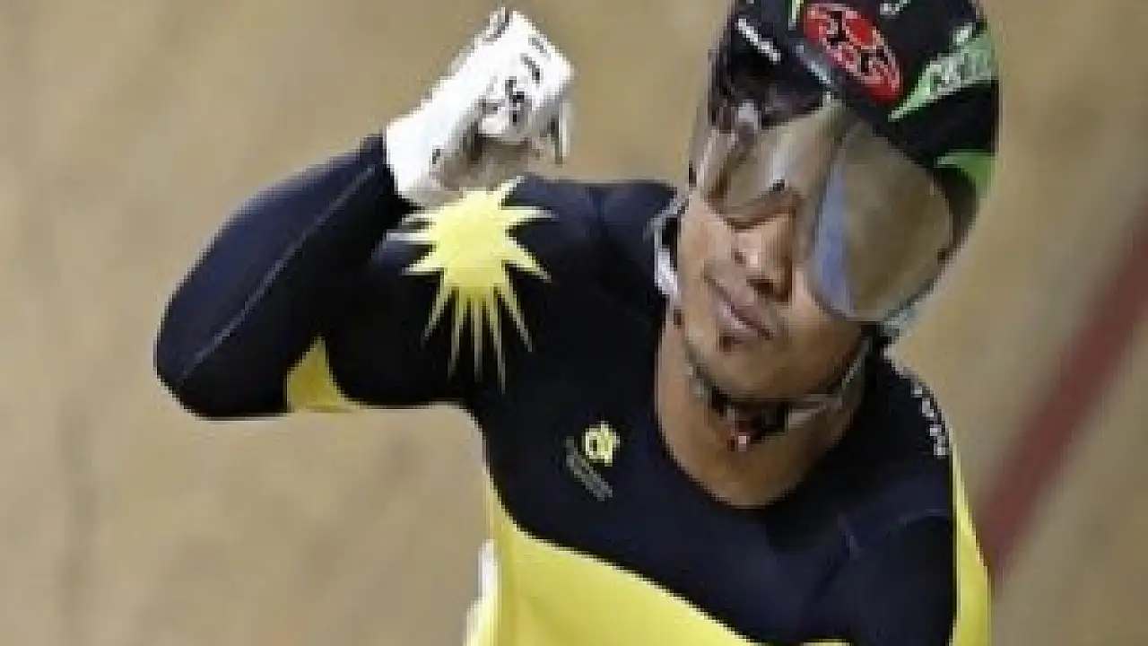 İskoçya'nın Glasgow kentindeki sprint yarışları için Sir Chris Hoy Veledromu'nda piste çıkan Malezyalı Awang, üzerinde 'Gazze'yi kurtar' (Save Gaza) yazılı eldivenleriyle İsrail saldırısı altındaki Gazze'ye destek verdi.