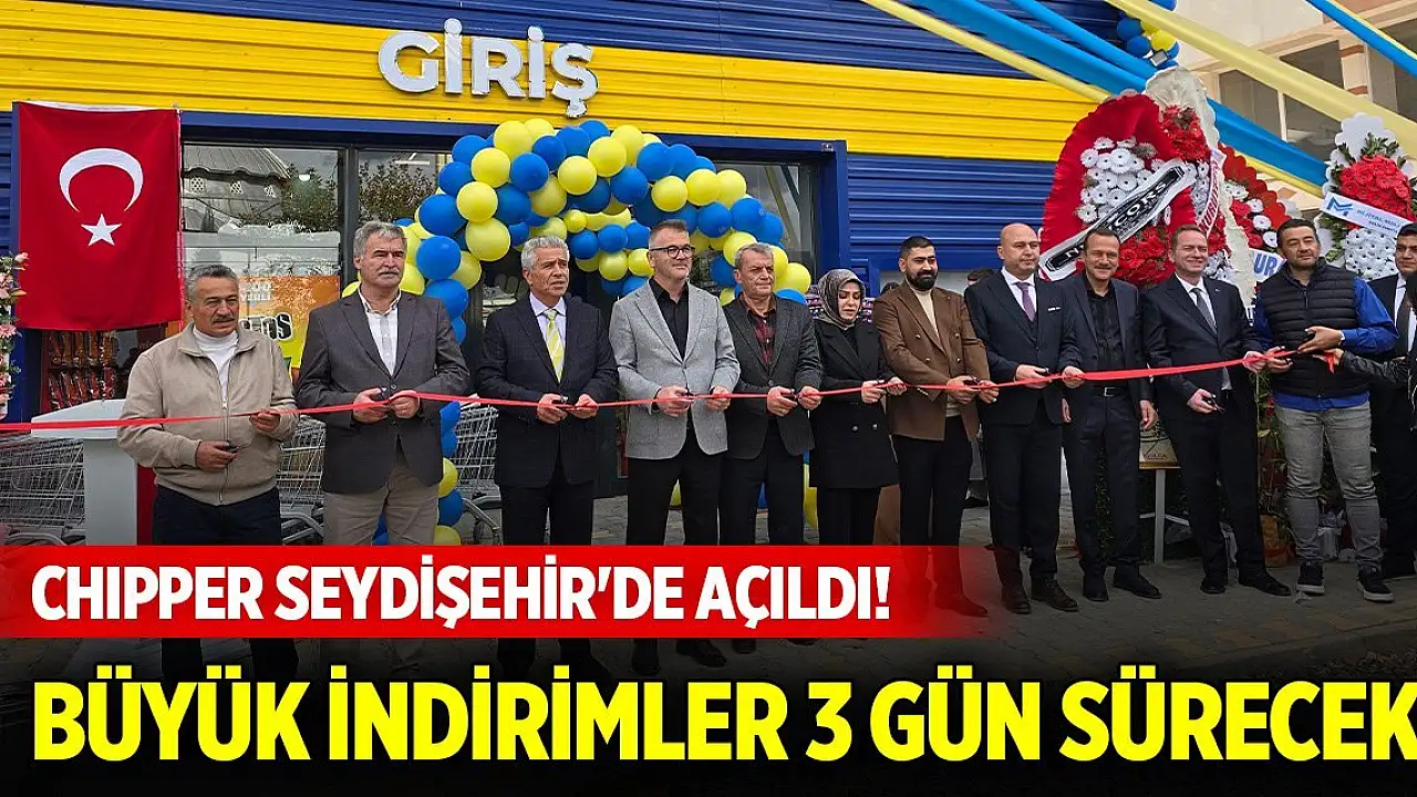 Konya'nın alışverişte yükselen markası Chipper Hipermarket, Seydişehir ilçesinde yoğun katılımla hizmete açıldı. Açılışa özel dev indirimlerin yapıldığı mağazada tüm kampanya ve indirimlerin 3 gün boyunca geçerli olacağı duyuruldu.