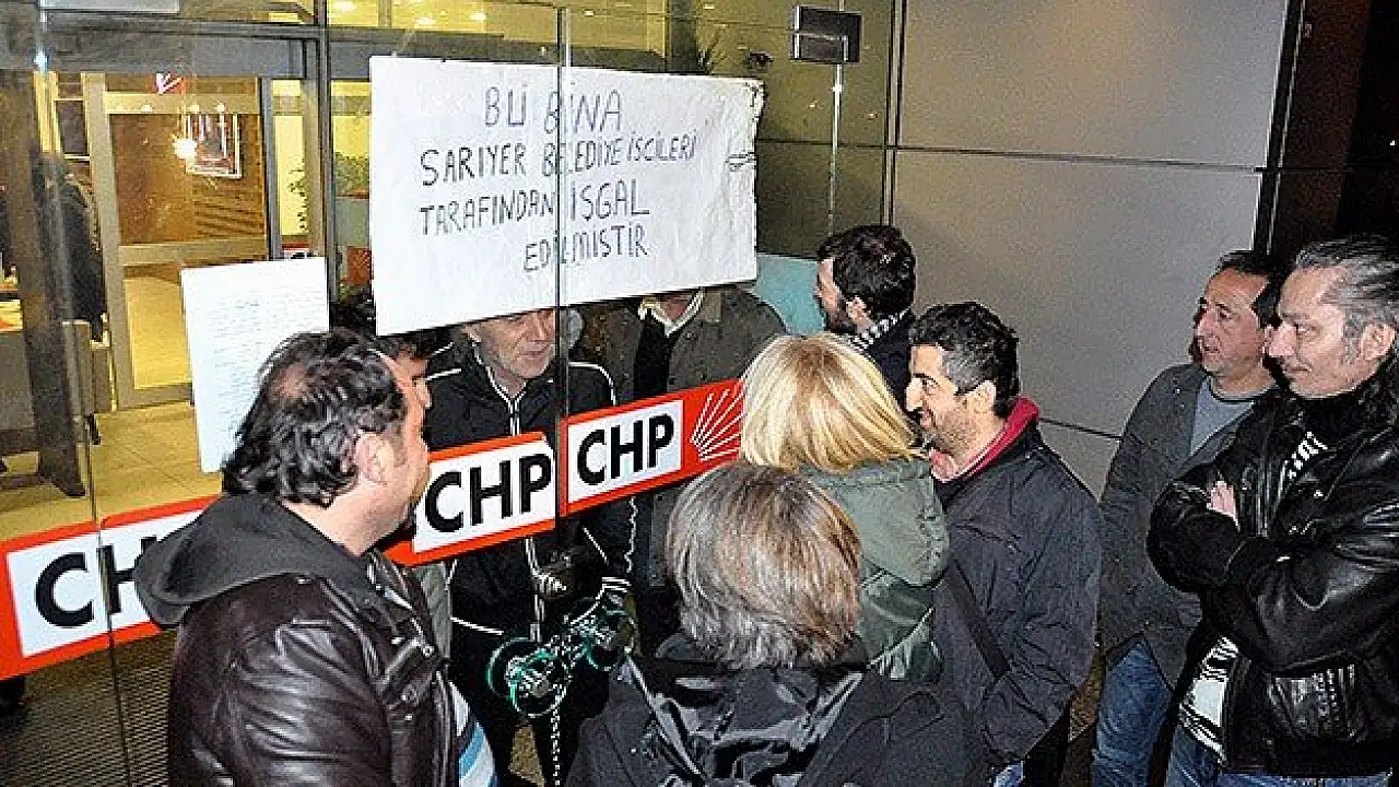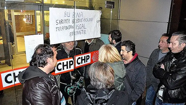 CHP'li Sarıyer Belediyesi'nin Park ve Bahçeler Müdürlüğü bünyesinde taşeron şirkette çalışırken işten atıldıklarını ve tazminatlarını alamadıklarını öne süren 16 işçi, Levent'teki CHP İl Başkanlığı binasına geldi.