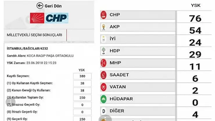 Partinin resmi Sandık Takip Sistemi, seçim başlamadan sonuçlarını açıkladı. Bütün sandıkların sonuçlarını sisteme yükleyen CHP'nin, seçimi kaybetmesi durumunda ''hile yapıldı, oylar çalındı'' gibi spekülasyonlarla provokasyon planı yaptığı bir kez daha ortaya çıktı. İşte 24 Haziran 2018 seçimleri için CHP'nin Sandık Takip Sistemi'ne yüklenen oy oranlarından bazıları.