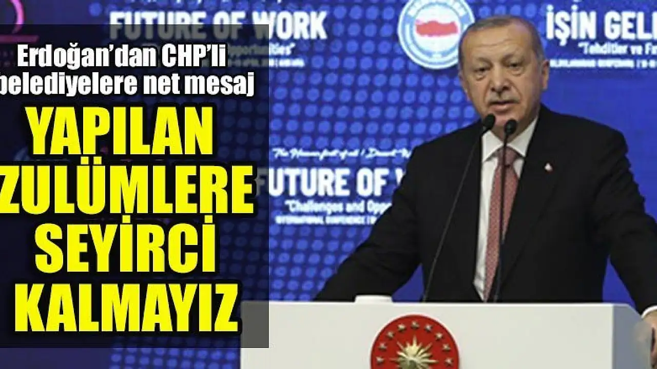 CHP'li Belediyelerin çalışanlara yaptığı sendika baskısına ilişkin konuşan Cumhurbaşkanı Recep Tayyip Erdoğan, 'Biz yapılacak zulümlere tribünden seyirci olmayız. Yapılması gereken neyse onu da yaparız. ' dedi.