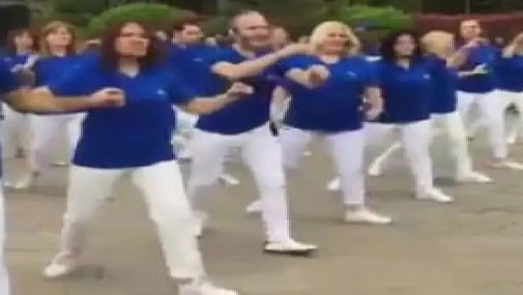 Etkinliğe katılanlar, üzerlerine mavi-beyaz renkli kıyafetler giyerek Yunanistan'ın milli oyunu olan Sirtaki'yi oynadılar.