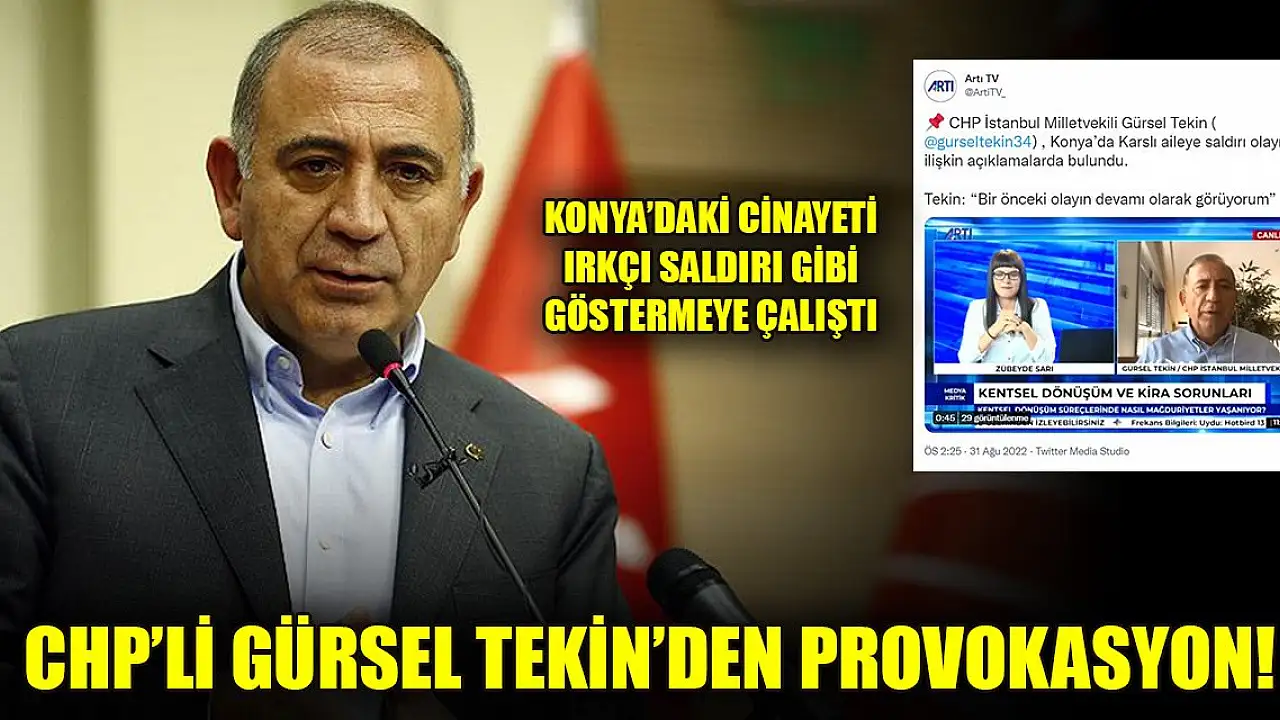 - CHP'li Gürsel Tekin'den provokasyon! Konya'daki cinayeti ırkçı saldırı gibi göstermeye çalıştı
