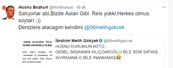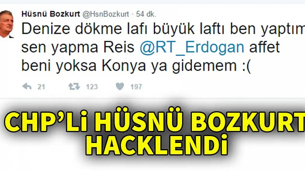 Halk oylamasında 'evet' oyu vereceklere tehdit ve hakaretler yağdıran CHP Konya Milletvekili Hüsnü Bozkurt'un twitter hesabı hacklendi.