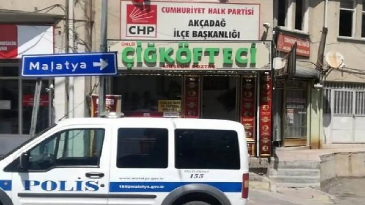Malatya'nın Akçadağ ilçesinde CHP Genel Başkan Yardımcısı Veli Ağbaba ve Akçadağ İlçe Başkanı Ali Aslan'ın toplantı yaptığı parti binası hedef alınarak tabancayla tek el ateş açıldı. CHP üyesi olduğu belirtilen saldırganın yakalanması için çalışmalar sürüyor.