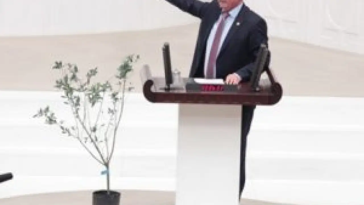 Cumhuriyet Halk Partisi (CHP) Balıkesir Milletvekili Namık Havutça, zeytin ağaçlarının kesilmesini protesto etmek için TBMM Genel Kurul kürsüsüne zeytin fidanı ile çıktı.