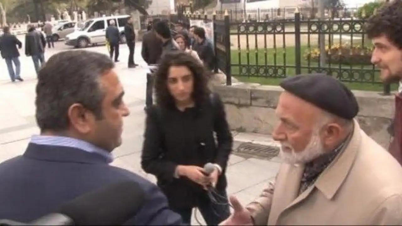 Bu sırada Tanrıkulu'nun yanına yaklaşan yaşlı bir vatandaş, "Hipokrat bizim tanrımız mı. Allah var Allah. Burada hakaret ediyorlar camiye" diyerek tepki gösterdi. Tanrıkulu, vatandaşa cevap vermeyerek yanından uzaklaştı.