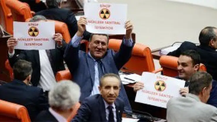 CHP'li milletvekilleri, Sinop'ta yapılacak olan nükleer santral projesini TBMM Genel Kurulu'nda protesto etti.