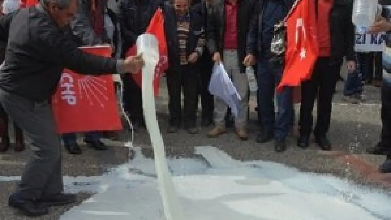Balıkesir'de süt üreticisinin yaşadığı sıkıntılara dikkat çekmek için düzenlenen protestoda CHP'liler litrelerce sütü sokağa döktü.