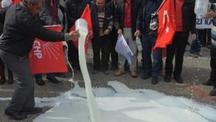 CHP il ve ilçe yöneticileri, Yeşilli Meydanı'nda bir araya gelerek, süt üreticinin sıkıntılarına dikkat çekmek için eylem yaptı. Bidon ve pet şişelerde bulunan kilolarca sütü sokağa döken partililer ve üreticiler, "Su bile daha pahalı. Süt para etmiyor" dedi.