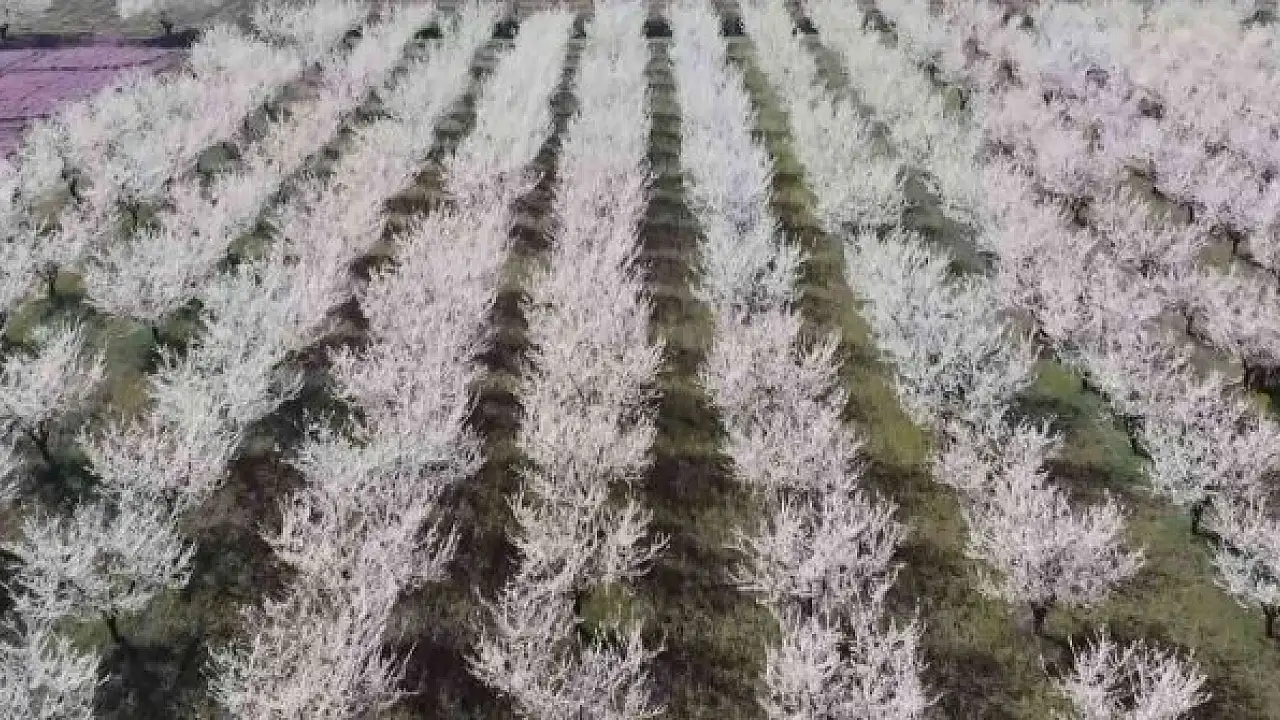 Bursa'da baharın gelmesiyle birlikte çiçek açan meyve bahçeleri, kartpostallık görüntüler oluşturdu. Dron ile görüntülenen meyve bahçeleri, vatandaşlar tarafından fotoğraf çekinmek için en uğrak mekan oldu.
