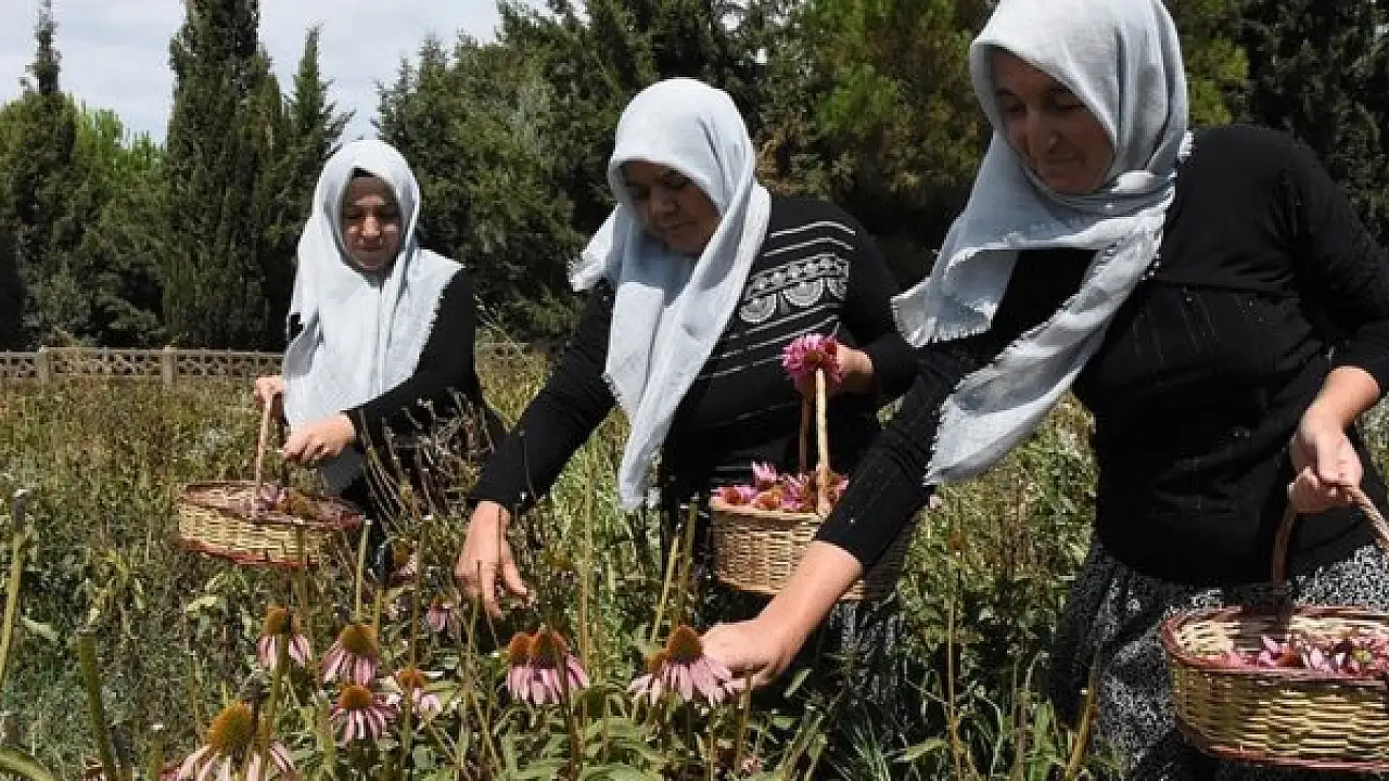 Bursa'nın Karacabey ilçesinde çiftçilikle uğraşan kadınlar, daha önce adını bile duymadıkları ekinezya bitkisini toprakla buluşturdukları 5 dönüm araziden kazanç sağlıyor.