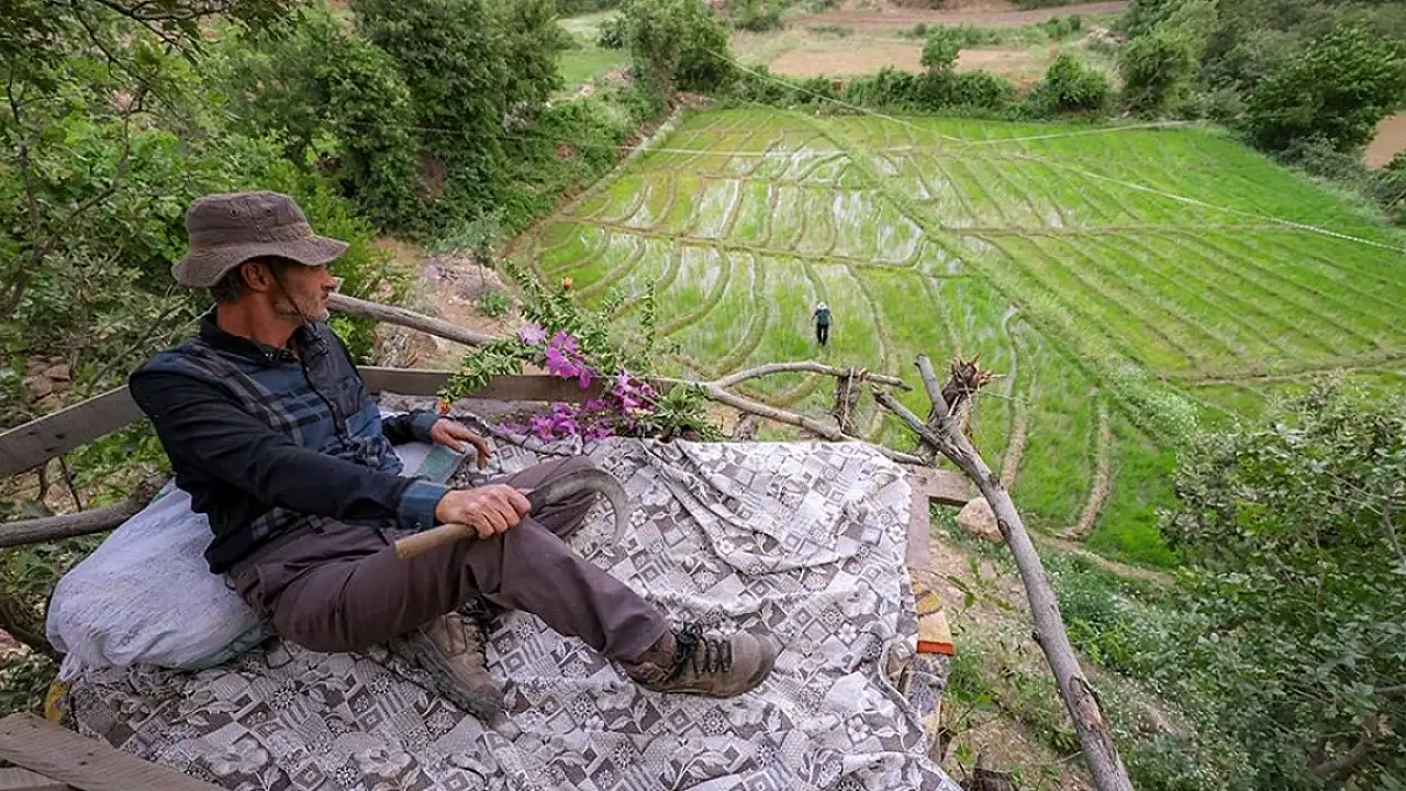 Hakkari'nin Irak sınırındaki Çukurca ilçesinde çiftçiler, yaban domuzlarının çeltik ve susam tarlalarına zarar vermemesi için ağaçların üzerine tahtadan yaptıkları gözetleme alanlarında nöbet tutuyor