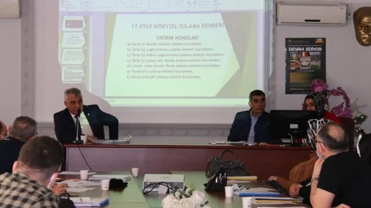 Sulama biriminde görevli personelle birlikte sulama tebliği ve rehberi hakkında bilgi verilerek, çiftçilere başvurularda kolaylığın sağlanması, kamu bütçesinin doğru ve yerinde kullanılması konusunda rehberin titizlikle uygulanarak başvuruların alınması gerektiği konusunda uyarılarda bulunuldu.