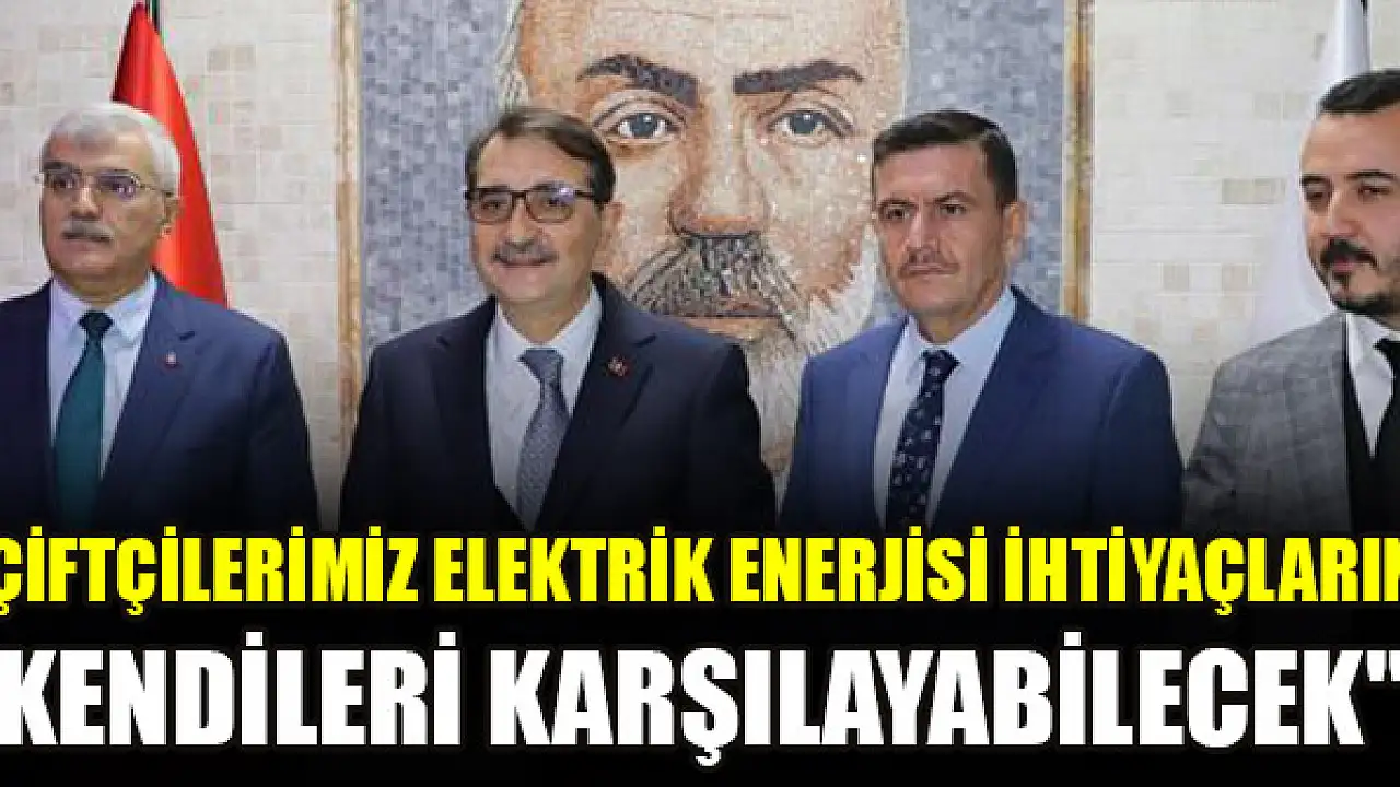 Enerji ve Tabii Kaynaklar Bakanı Fatih Dönmez, çiftçilerin enerji kaynaklarından azami ölçüde yaralanmalarıyla ilgili, 'Çiftçilerimiz çatılarında güneş panellerini kurmak suretiyle elektrik enerjisi ihtiyaçlarını karşılayabilecek' dedi.