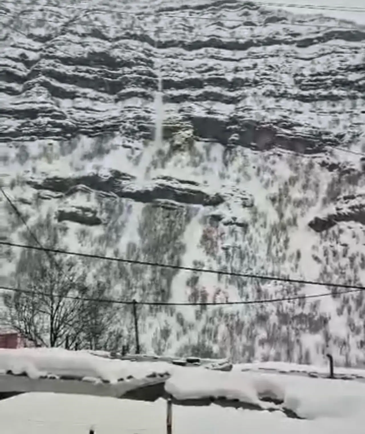Şırnak’ın Beytüşşebap ilçesine bağlı Aşağıdere köyünde aşırı yağış sonrası dağlarda biriken kar, kütlerler halinde düştü. Şelaleyi andıran çığ düşme anı saniye saniye kaydedildi.