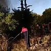 Denizli'nin Çivril ilçesinde çıkan yangında zarar gören ağaçlık alandaki bir ev yandı.