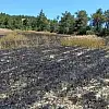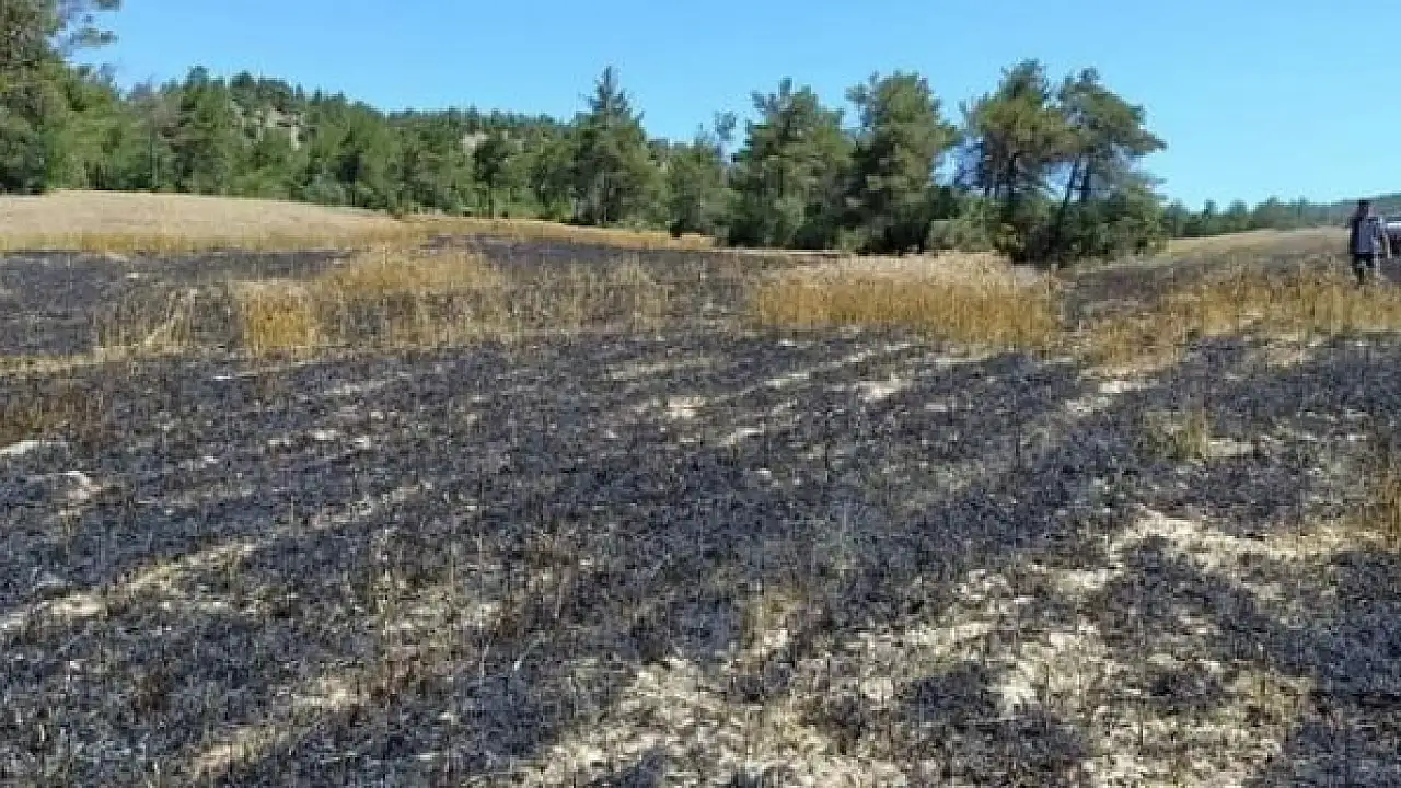 Yangın, tarla yakınındaki ormanlık alana sıçramadan ekipler tarafından söndürülürken, buğday ekili arazi küle döndü.