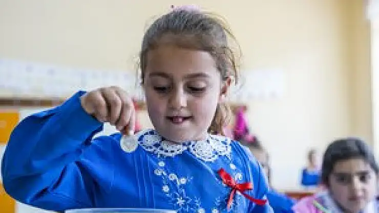 Konya'nın Sarayönü ilçesinde ilkokul birinci sınıf öğrencileri, çikolata ve simit paralarını Suriyeli arkadaşlarına yardım amacıyla biriktiriyor.