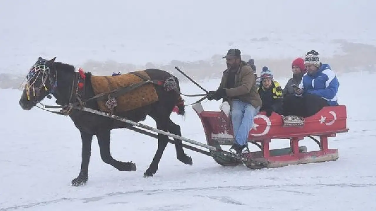 Buz kalınlığının yaklaşık 30 santimetreye ulaşmasıyla Çıldır Gölü'nün simgesi haline gelen atlı kızaklar da buzun üzerine çıkmaya başladı. Yerli ve yabancı turistleri buz üzerinde gezdiren atlı kızaklar keyifli anlar yaşatıyor.