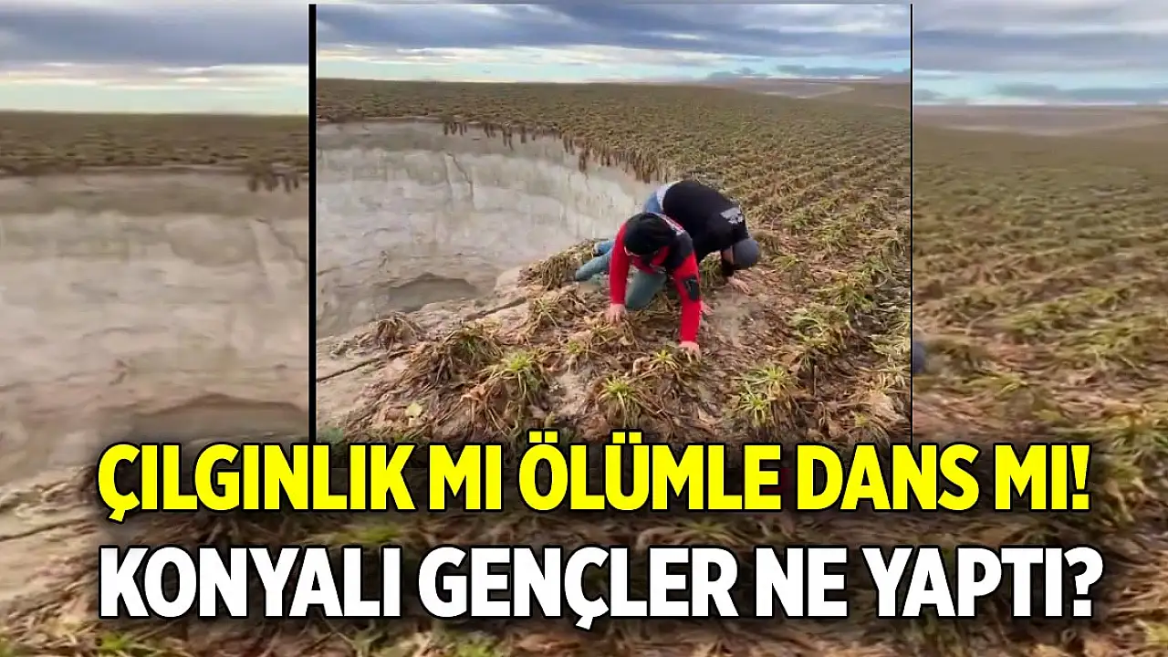 Konya'nın Karapınar ilçesinde iki arkadaş beğeni almak için oluşan bir obruğun kenarında ölümle dans etti.