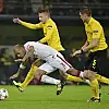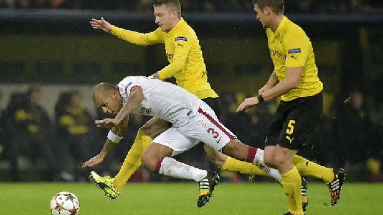 Galatasaray, Şampiyonlar Ligi D Grubu'ndaki 4. maçında Borussia Dortmund'a yine farklı şekilde mağlup oldu. BORUSSIA DORTMUND-GALATASARAY: 3-1 STAT: Signal İduna Park SAAT: 21.45 HAKEM: Pavel Kralovec BORUSSIA DORTMUND: Weidenfeller, Piszczek, Subotic, Sokratis, Durm, Kehl, Bender, Mkhitaryan, Kagawa, Reus, Aubameyang GALATASARAY: Muslera, Tarık, Semih, Chedjou, Hakan, Melo, Dzemaili, Selçuk, Hamit, Sneijder, Umut MAÇTAN ÖNEMLİ DAKİKALAR Dakika 1: Maç Dortmund'lu futbolcuların santrasıyla başladı. Dakika 3: Dortmund sağ kanattan etkili geldi ancak ceza sahası içinde Galatasaray savunmasının müdahalesi ile top kornere gitti. Dakika 5: Dortmund'da Kagawa'nın sağ kanattan ceza alanımıza ortasında savunmada Cehdjou topu karşıladı. Dakika 9: Temsilcimiz Galatasaray bu dakikalarda topa önde basıyor. Dakika 11: Dortmund'da Kagawa Galatasaray ceza alanı önünde topa elle müdahale ettiği için hakem düdüğünü çaldı karar serbest vuruş. Dakika 12: Dortmund ceza alanımızın sol çaprazında kısa paslar yaparak savunmanın dengesini bozmak istedi ancak son atılan ara pasında top çok hızlı gitti. Dakika 14: Galatasaray gole çok yaklaştı... Tarık'ın sağ kanattan içeri kestiği ortaya Sneijder ceza saha içinde roveşata bir vuruş yaptı ancak top kalecide kaldı. Dakika 17: Galatasaray'da Selçuk sağ kanattan köşe atışı kullandı... Ceza sahası içine düşen topa Semih boş pozisyonda vurmak istedi ancak ayağı boşa kaçtı. Dakika 21: Temsilcimiz Galatasaray bu dakikalarda Dortmund savunmasını zorluyor. Dakika 25: Dortmund gole çok yaklaştı... Reus'un sol kanattan kullandığı köşe vuruşunda Sokratis ceza sahası içinde kafa vuruşunu yaptı ancak top üst direğe çarptı. Dakika 30: Galatasaray'da sol kanattan Dortmund ceza sahasına yapılan ortada top kimsenin bulunmadığı bir alana düştü. Dakika 33: Dortmund çok tehlikeli geldi... Mkhitaryan'ın ceza sahası üzerinden topuğuyla bıraktığı topta Kagawa vuruşunu yaptı ancak top az farkla auta gitti. Dakika 35: Dortmund'da Reus'un kullandığı köşe vuruşunda kale sahası içinde seken topa Subotic vurdu ama top üstten auta gitti. Dakika 39: GOL... Reus... Sağ kanattan topla birlikte ceza alanına giren Reus, karşı karşıya pozisyonda düzgün bir vuruşla topu sol köşeden ağlara gönderdi. Dakika 44: Galatasaray'da Selçuk İnan, Reus'a yaptığı müdahale sonrası sarı kartla cezalandırılıyor. Dakika 45: Tarık Çamdal Sokratis ile girdiği kafa topu mücadelesinde başına aldığı darbe sonrası kısa süreli bir sakatlık geçiriyor. Dakika 45: Maçta ilk yarının sonuna 1 dakika ilave ediliyor. ...Maçta ilk yarı Dortmund'un 1-0'lık üstünlüğü ile sona eriyor... Dakika 46: Temsilcimiz Galatasaraylı futbolcuların santrasıyla ikinci yarı başlıyor. Dakika 48: Galatasaray'da Sneijder ceza sahası dışından sert bir şut çekti ve top soldan az farkla auta gitti. Dakika 53: Galatasaray taraftaraları tarafından sahaya atılan yabancı maddelerden dolayı mücadele şuanda durmuş durumda. Dakika 55: Maçın hakemi yardımcılarını yanına çağırarak uyarıda bulundu. Dakika 55: Mücadele yeniden iden başladı... Kagawa'nın sağ kanattan kullandığı köşe vuruşunda savunma araya girdi ve top tekrar kornere çıktı. Dakika 56: GOL... Sokratis... Dortmund'da sol kanattan kullanılan köşe vuruşunda ceza alanımıza yapılan ortada kafalardan seken topu Sokratis ağlara gönderdi. Dakika 62: Borussia Dortmund'da oyuncu değişikliği... Shinji Kagawa oyundan çıkıyor yerine İlkay Gündoğan oyuna dahil oluyor. Dakika 64: Galatasaray'da Chedjou rakibine yaptığı faul sonrası sarı kart görüyor. Dakika 67: Tarık sağ kanattan son çizgiye kadar indi ama orta açacağı sırada topu kaybetti. Dakika 70: GOOOOLLLLLLLLLLLLLL... Hakan Balta... Sneijder'in sol kanattan kullandığı köşe vuruşunda ceza alanına ortasını yaptı kale sahası içinde topa iyi yükselen Hakan kafa vuruşuyla farkı 1'e indirdi. Dakika 71: Borussia Dortmund'da oyuncu değişikliği... Marco Reus oyundan çıkıyor yerine Ciro Immobile oyuna giriyor. Dakika 74: GOL... Immobile... Dortmund'un ani atağında Aubameynag sol kanattan, Immobile'ye pasını verdi... Immobile de karşı karşıya pozisyonda tam yere düşerken topu ağlara göndermeyi başardı. Dakika 77: Sneijder'in ceza alanındaki Umut'a pasında savunma araya girdi. Dakika 82: Galatasaray'da oyuncu değişikliği...Hamit Altıntop'un yerine Yasin Öztekin oyuna girdi. Dakika 83: Dortmund 4. gole çok yaklaştı... Immobile, sağ kanatta Semih'ten sıyrılıp ceza alanına girdi ve pasını Aubamyang'a verdi. Aubameyang, Muslera'dan sıyrıldı ama boşta kalan topa son anda Chedjou ayak koydu. Dakika 84: Galatasaray'da Umut Bulut'un yerine Burak Yılmaz oyunda. Dakika 85: Borussia Dortmund'da Sven Bender'in yerine Adrian Ramos oyunda. Dakika 85: GOL Semih Kaya (Kendi Kalesine)... Sol kanattan gelişen Dortmund atağında ceza alanına yapılan ortada Immobile'nin ceza alanı içi sağ çaprazından kale sahasına sert çevirdiği topta Semih topu uzaklaştırmak isterken kendi ağlarına gönderdi. Dakika 89: Sol kanattan gelişen Dortmund atağında ceza alanına yapılan ortada savunmamız topu karşıladı.