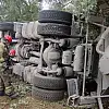 Çimento yüklü tanker devrildi