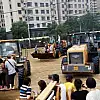 Selden etkilenen şehirlerden Anyang'da insanlar, kepçe yardımıyla tahliye edildi.