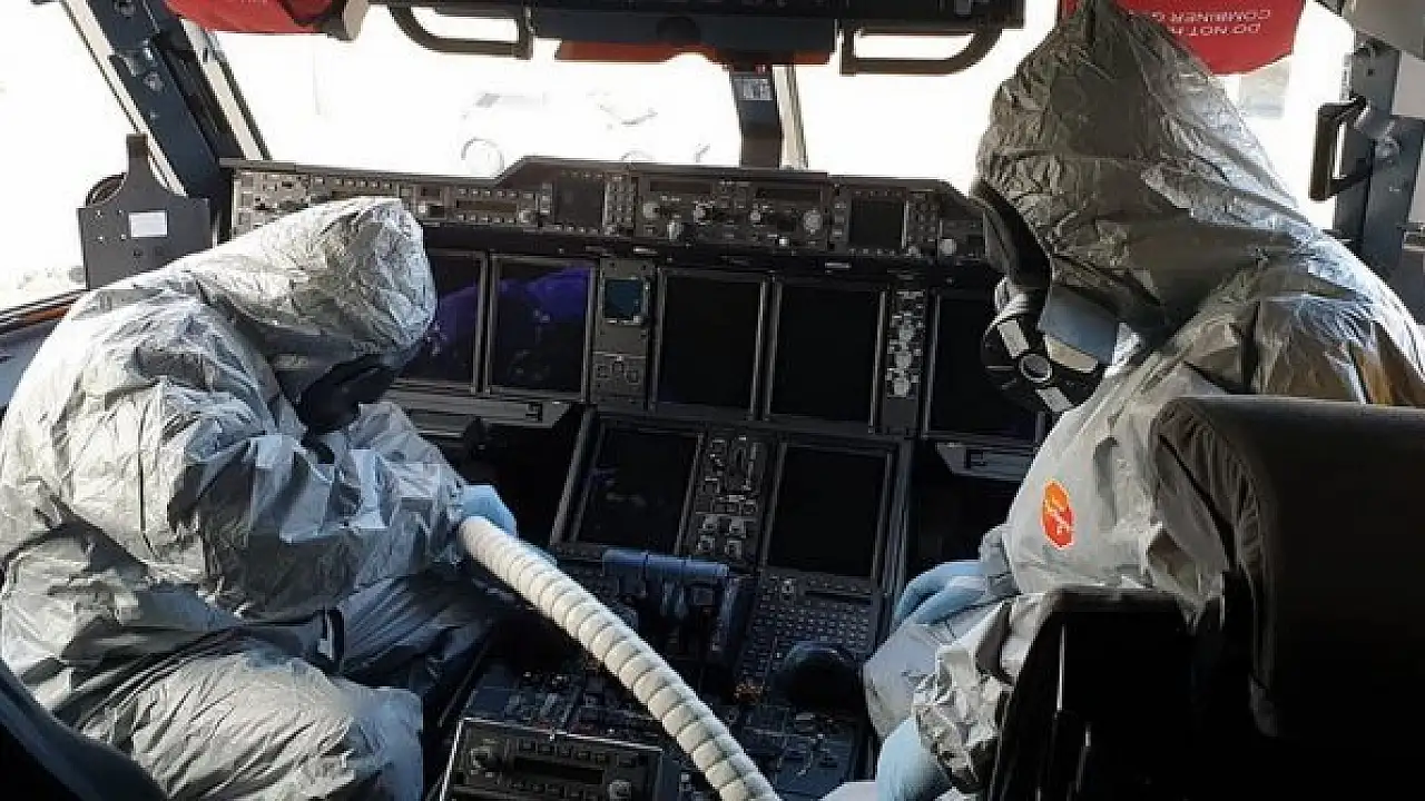 Açıklamada, kimyasal, biyolojik, radyolojik ve nükleer (KBRN) uzmanlarının uçağın içini ve dışını detaylı şekilde arıtma işlemine tabi tuttuğu kaydedildi.