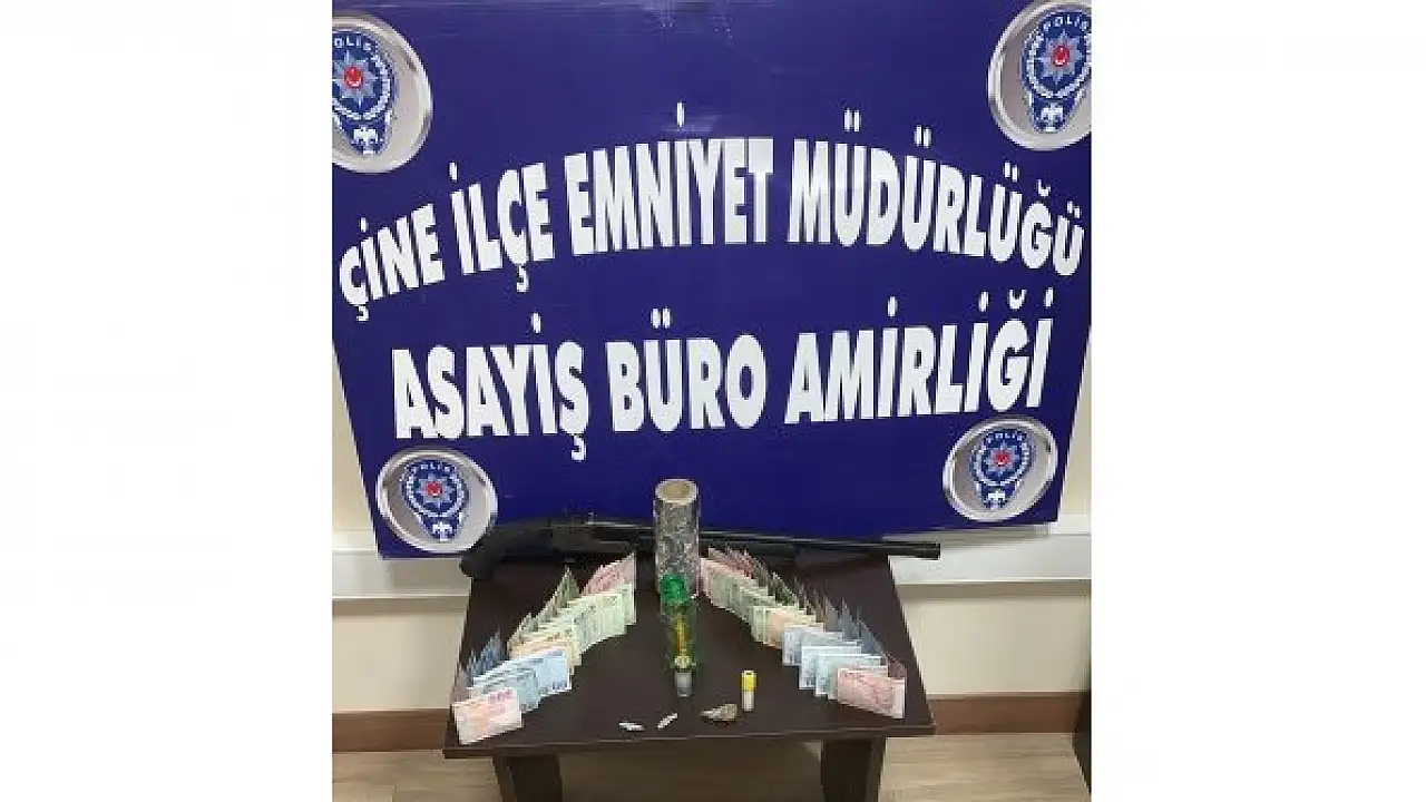 Edinilen bilgiye göre, Çine İlçe Emniyet Müdürlüğü, Asayiş Büro Amirliği ekipleri, uyuşturucu satıcıları ile mücadele kapsamında, hakkında uyuşturucu madde kullanmak ve uyuşturucu madde ticareti suçundan işlem yapılan M. O. isimli şüpheliyi Sarıoğlu Mahallesi üzerinde motosiklet ile seyir halindeyken durdurarak gözaltına aldı. Şahsın yapılan üst aramasında, 2 adet satışa hazır halde ve deri montunun içerisinde şeffaf tüp içerisinde toplamda 8 gram kristal tabir edilen uyuşturucu maddeler ele geçirildi. Devam eden araştırmalarda şüphelinin Soğancılar Mahallesi'nde bulunan işyerinde yapılan aramada ise uyuşturucu ve uyarıcı madde paketlemede kullanılan alüminyum folyo, 1 adet " tek kırma tabir edilen ruhsatsız av tüfeği, 1 adet av tüfeğine ait olduğu düşünülen dolu kartuş, 1 adet içerisinde uyuşturucu madde kalıntılarının olduğu düşünülen ilaç kutusu, 1 adet uyuşturucu madde kullanımı için hazırlanmış aparat, şeffaf poşete sarılmış 2 gram ağırlığında esrar tabir edilen uyuşturucu madde ele geçirildi.