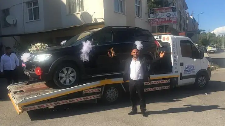 Cip arızalanınca çekici üzerinde gelin almaya gitti
