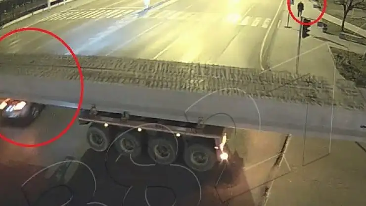 Samsun'da bir cip hareket halindeki tırın altından geçti. Gece yaşanan olayda çevrede bulunanlar büyük bir şaşkınlık yaşadı. Bu an ise Kent Güvenlik Yönetim Sistemi (KGYS) kamerasına yansıdı.