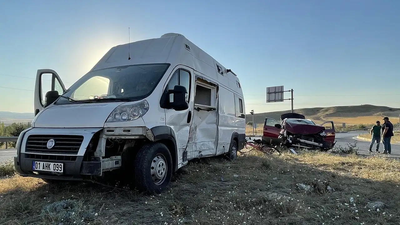 SİVAS'ta, cip ile karavanın kavşakta çarpıştığı kazada 1'i 4 aylık bebek, 6'sı kadın toplam 7 kişi yaralandı.