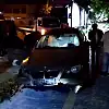 Sürücüsünün kontrolünden çıkan otomobil önce aynı istikametteki cipe ardından da kaldırıma çarpıp havalanarak binanın otoparkına düştü.