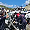 Ciple çarpışan otomobilin motoru yola savruldu, sürücüsü sıkıştı