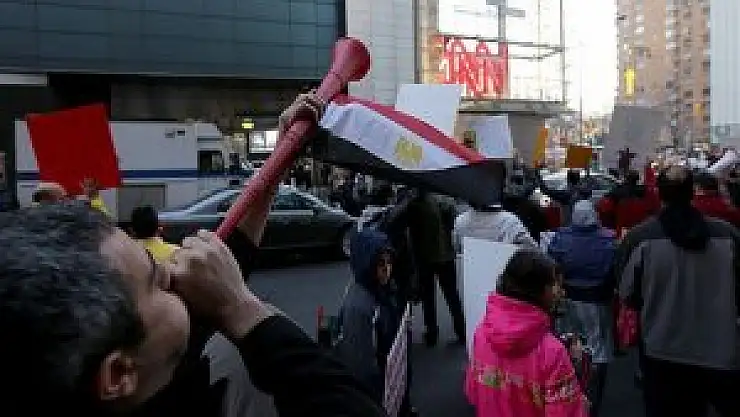 ABD'de yaşayan askeri darbe karşıtı Mısırlılar, New York'ta CNN binası önünde protesto gösterisi düzenledi.