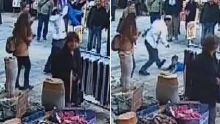 Dün, tarihi Kemeraltı Çarşısı'nda seyyar satıcının, kovalayarak yakaladığı çocuğu havaya kaldırıp yere fırlatması ve çevredekilerin duruma tepki göstermesi, iş yerinin güvenlik kamerasına yansımıştı.
