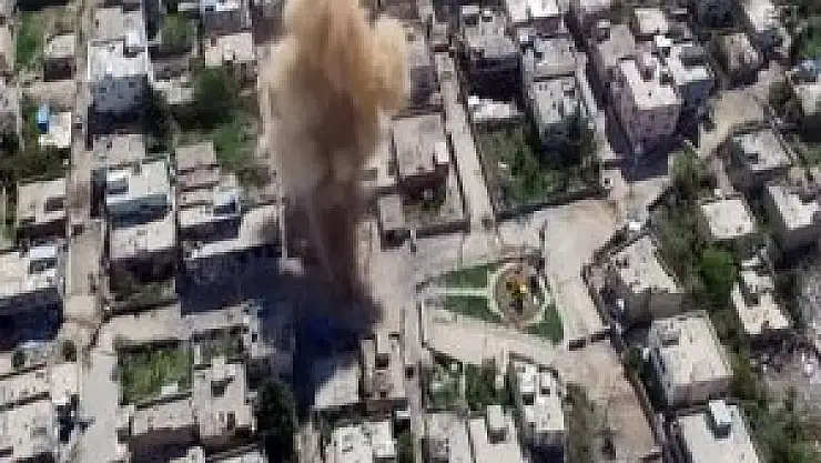Genelkurmay Başkanlığı, terör örgütü PKK'ya yönelik yürütülen operasyonların aralıksız sürdüğü Mardin Nusaybin'de kontrollü şekilde patlatılan el yapımı patlayıcının havadan çekilen görüntülerini paylaştı.