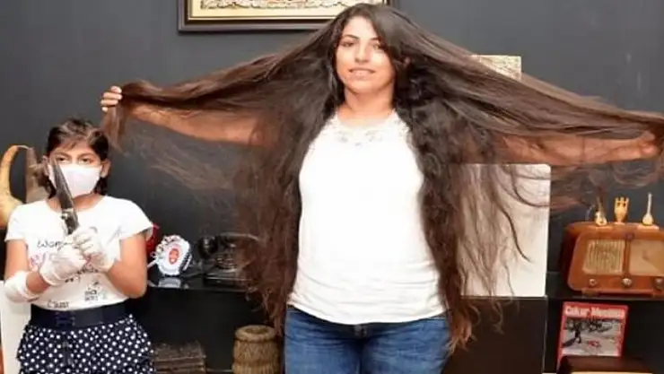 Bir kreşte çalışan Gurbet Yağcı'nın yaklaşık 10 yıldır kestirmediği saçları 1 metre uzunluğa ulaştı.